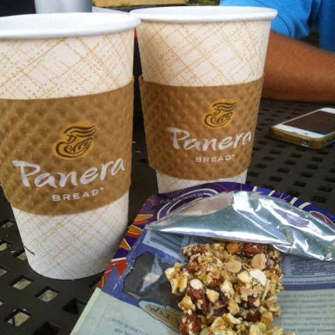 Tijd voor een bakkie koffie en thee. Bij Panera Bread hebben we heerlijk op het terras gezeten.